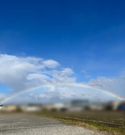 おおぉ、めっちゃ綺麗な、虹が出てる