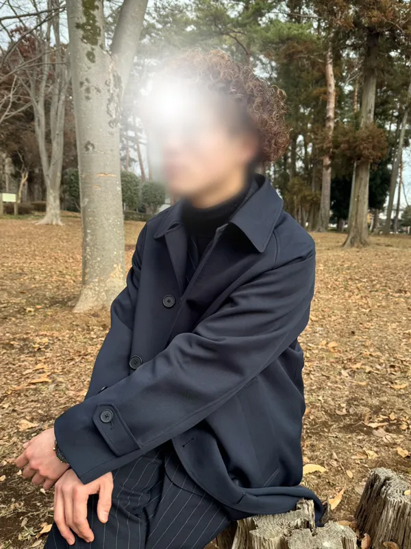 パーマにスーツなので少しクールに見えるかもしれませんが、実は穏やかでよく笑います。